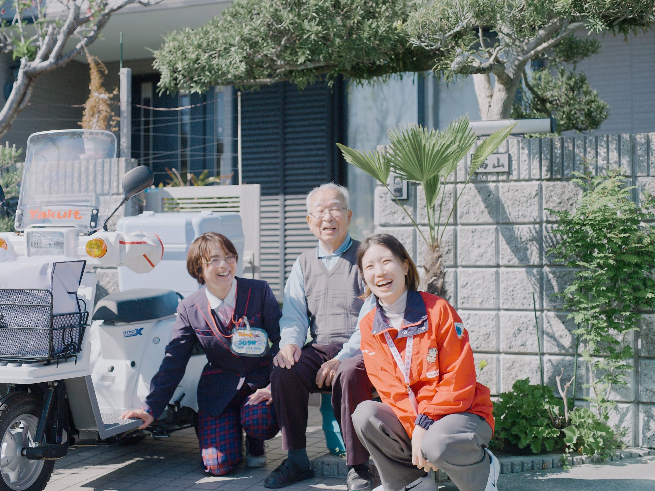 笑顔が増えたAさんの様子や変化を、心から嬉しく想うヤクルトレディにもとびきりの笑顔がこぼれています。